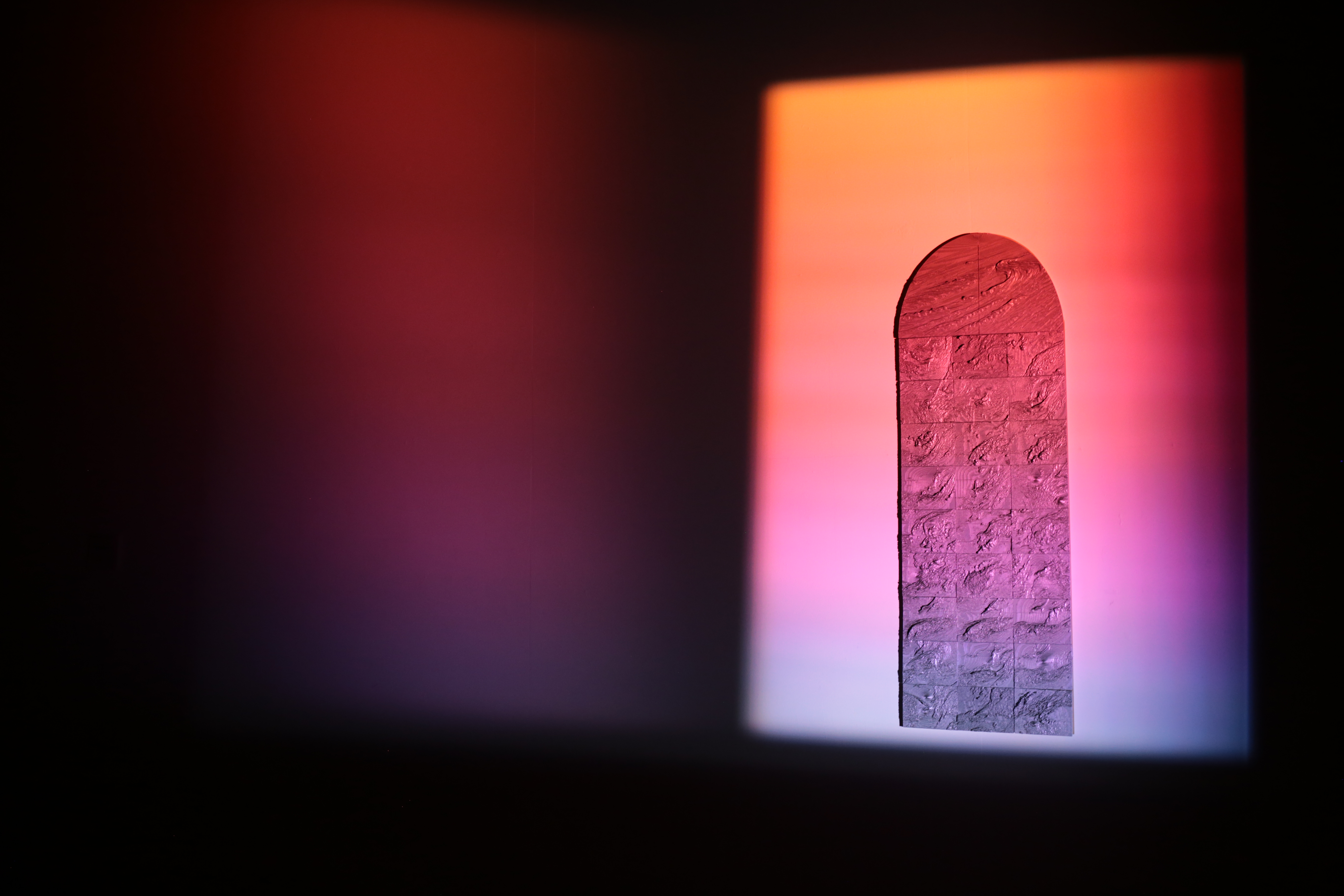 The projection of the light-spectrum gradient can be interpreted in different ways, but the most important thing is that it aims to create a portal, or passageway, into a different dimension. The spiritual element can be experienced differently by each viewer. I hope you can meditate for a moment while looking at it, and feel calm.